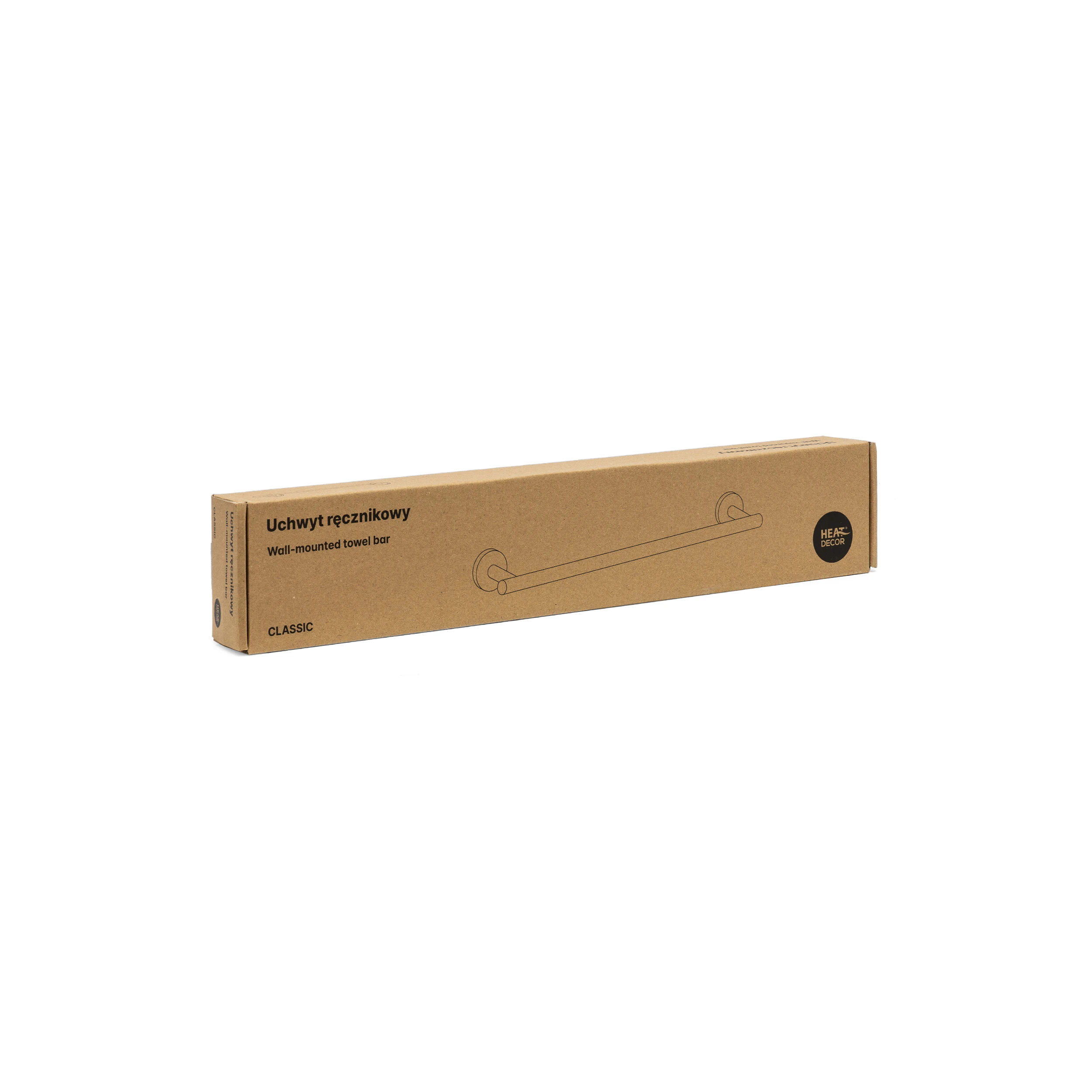 Uchwyt ręcznikowy, model Classic, długość 470 mm, kolor złoty szczotkowany (HD-NEO.A.M.03) to kompaktowy, dekoracyjny wieszak na ręczniki, Dedykowany do montażu z panelem HD-NEO o mocach 35 W i 55 W. Mniejsza długość sprawdzi się w łazienkach o ograniczonej przestrzeni, nie wymuszając potrzeby rezygnacji z eleganckiego designu i wygody użytkowania.