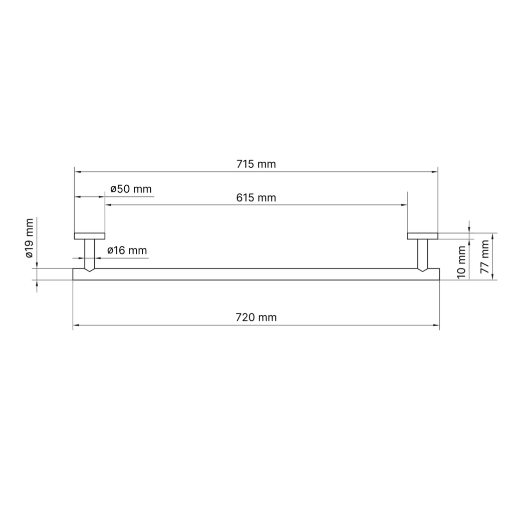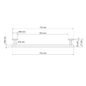 Szerokość uchwytu wynosi 720 mm, wysokość 50 mm, a głębokość 77 mm. Produkt objęty jest 2-letnią gwarancją.
